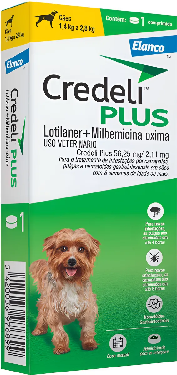 Para auxiliar no combate dos parasitas, o antipulgas Credeli para Cães de 1,3 a 2,5kg, da Elanco, oferece um comprimido pequeno e mastigável, confeccionados com o princípio ativo Lotilaner. Eles atuam diretamente no controle de pulgas e carrapatos, deixando o bichinho muito mais protegido e feliz.